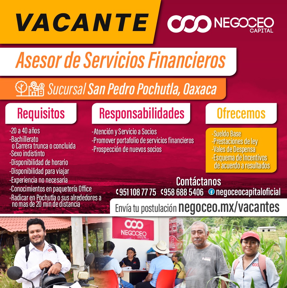 Asesor de Servicios Financieros - Zona San pedro Pochutla, Oaxaca